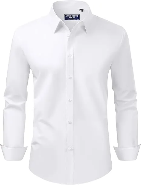 A regular-fit, long-sleeve dress shirt featuring stretch fabric and Stain Shield technology for a clean look. Perfect for business and wedding occasions.
